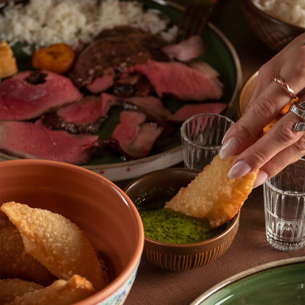 Accanto al churrasco, troverai una selezione di piatti tipici: dal farofa al riso alla brasiliana, passando per empanadas croccanti e platano fritto. Ogni piatto completa il gusto del nostro churrasco, offrendo un equilibrio perfetto di sapori.