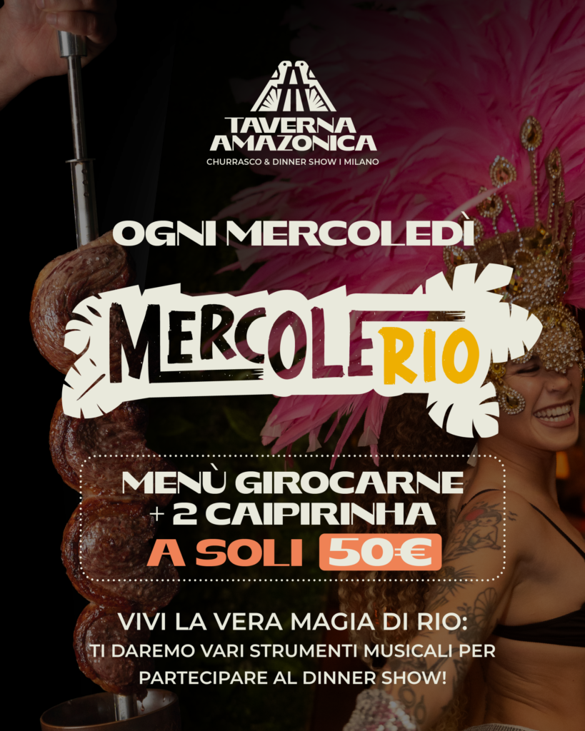Ogni mercoledì, Taverna Amazonica rompe la routine settimanale e ti trasporta direttamente nel cuore pulsante di Rio de Janeiro. Il MercoleRIO è l’appuntamento fisso per chi cerca un mix esplosivo di sapori autentici e intrattenimento travolgente.